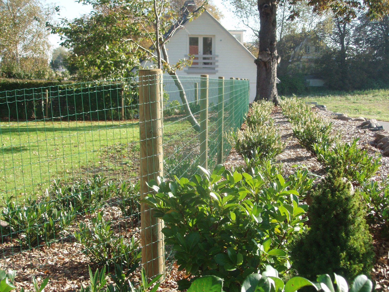 Hegnet opsættes på vores robiniepæle eller trykimprægnerede pæle, som du finder her. Bemærk, at en god start og slut stolpe er vigtig, så der er noget at stramme op på.