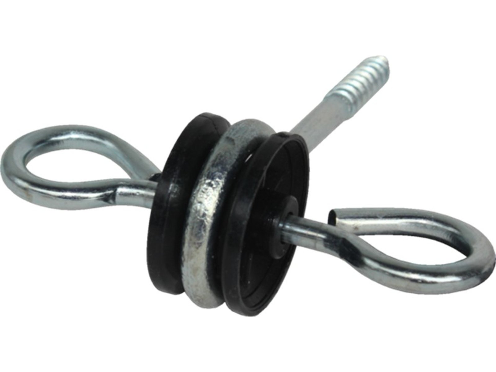 Disse ledbeslag med skrue er en solid løsning til lette elhegn. Beslagene har dobbelt øje og en integreret skrue, som gør dem nemme at montere direkte i træstolper.