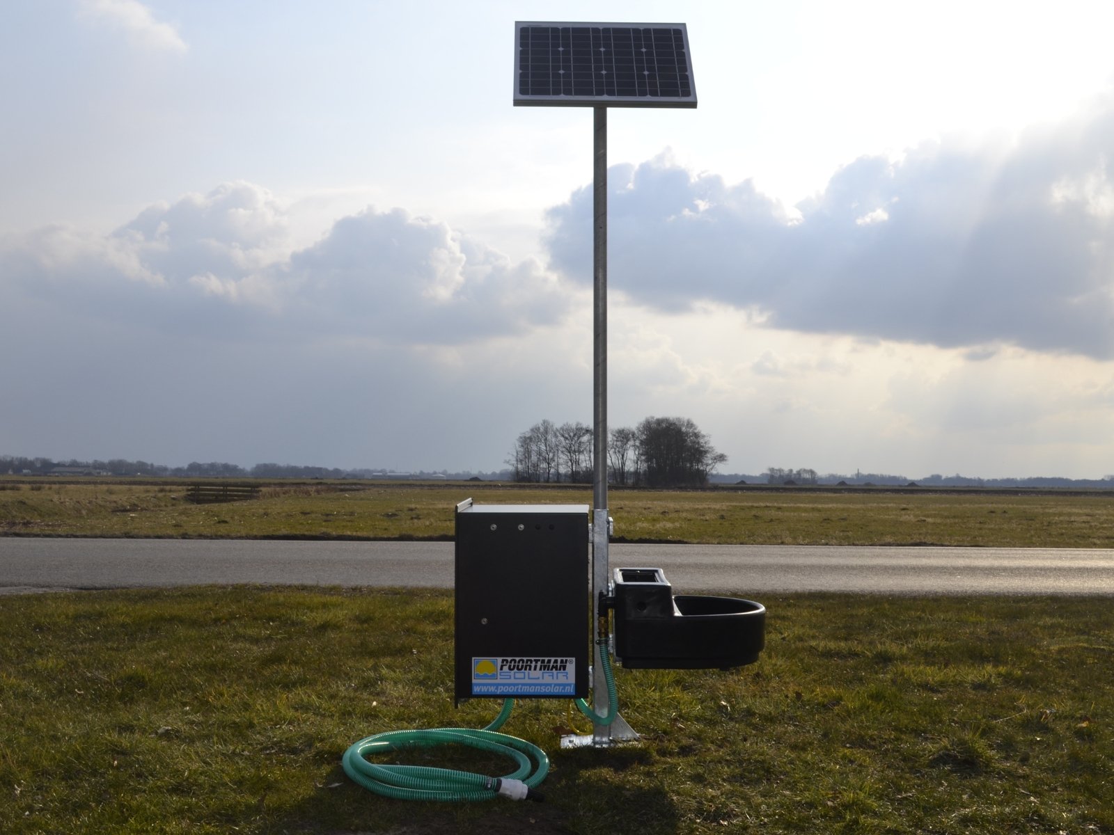 MS Markpumpe 1.5 er et komplet og energieffektivt vandforsyningsanlæg til mark og fold. Systemet er solcelledrevet og designet til at forsyne kvæg, heste og får med frisk drikkevand – selv i områder uden adgang til elnettet. Anlægget kan levere op til 4.000 liter vand om dagen og fungerer stabilt i op til 14 dage uden sol, når det tilkobles et 75 Ah batteri (sælges separat).