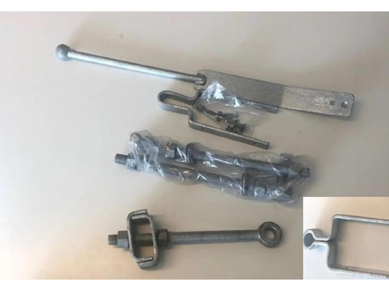 Sættet er sammensat af varmgalvaniserede beslag i solid kvalitet, der giver en stabil og holdbar lukning af lågen – perfekt til mindre folde, havelåger eller dyreindhegninger.