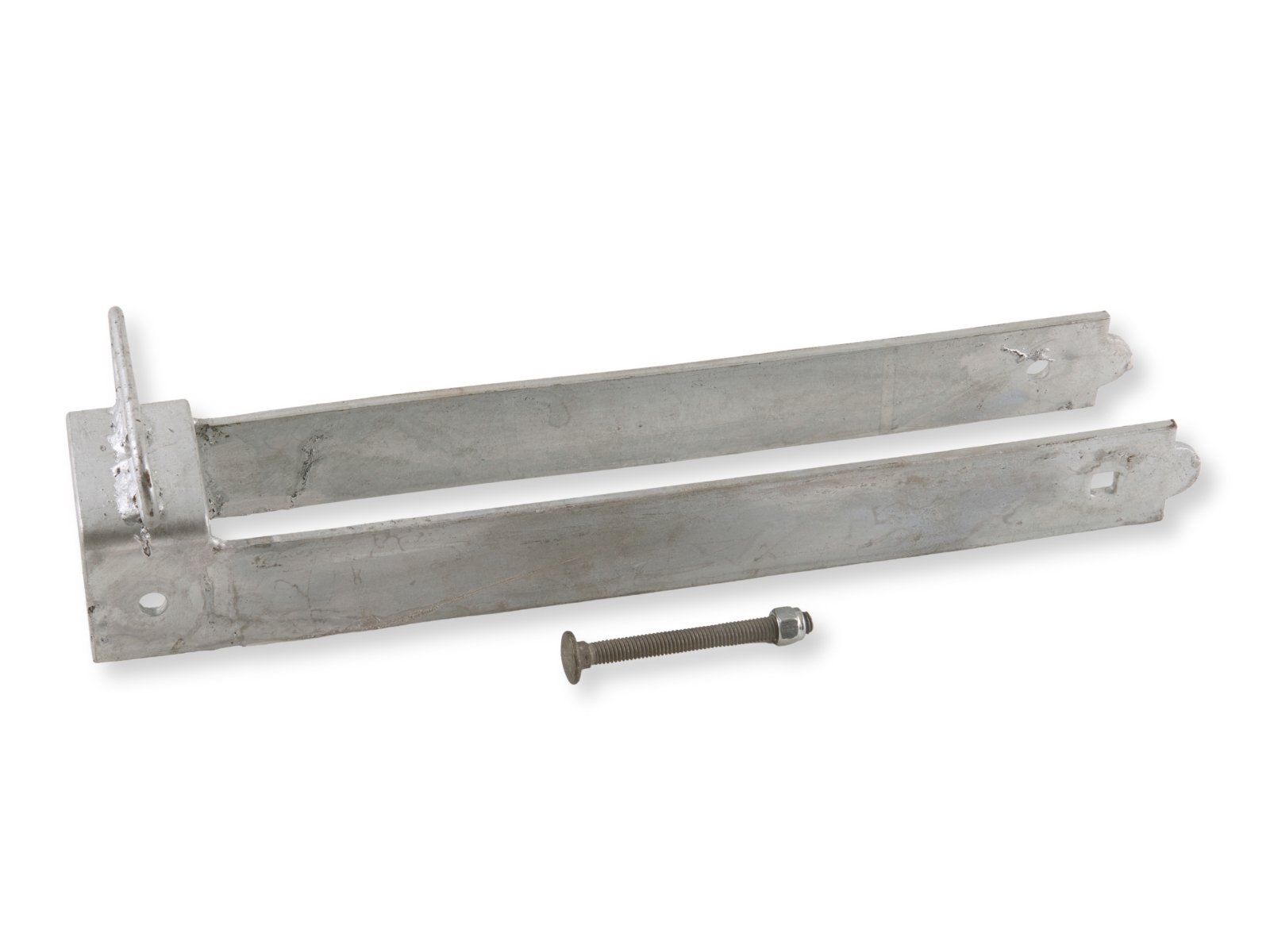 Dette overfald bruges til at holde trælåger lukket på en enkel og effektiv måde. Beslaget monteres på lågens bevægelige del og går i indgreb med en fast bøjle eller stabel på modstående stolpe – klar til hængelås, split eller blot som mekanisk lukning. Overfaldet er fremstillet i varmgalvaniseret stål og tåler dermed vind, vejr og daglig brug uden problemer. En robust og klassisk løsning, som passer til både landbrugslåger og havehegn.